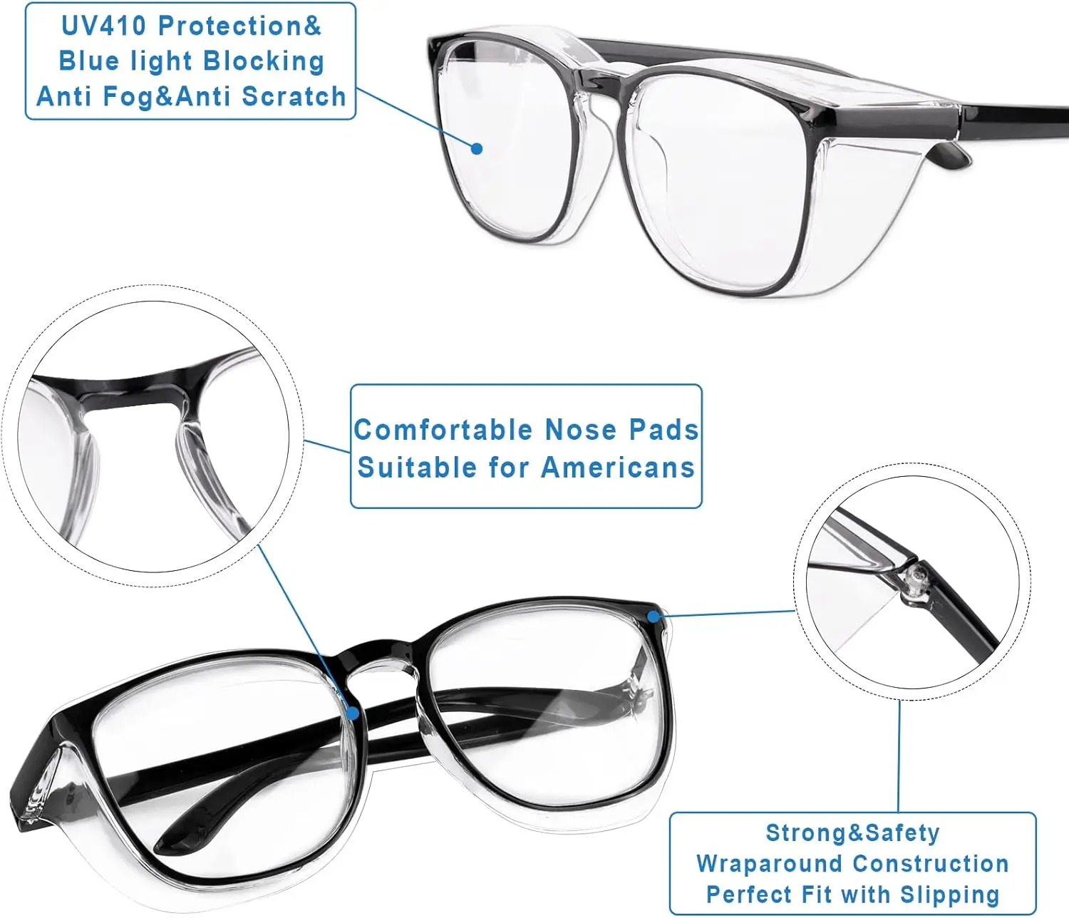 Safety glasses with side shields: anti -saliva/anti -dust/anti -pollen/anti -particles/anti -blue light.